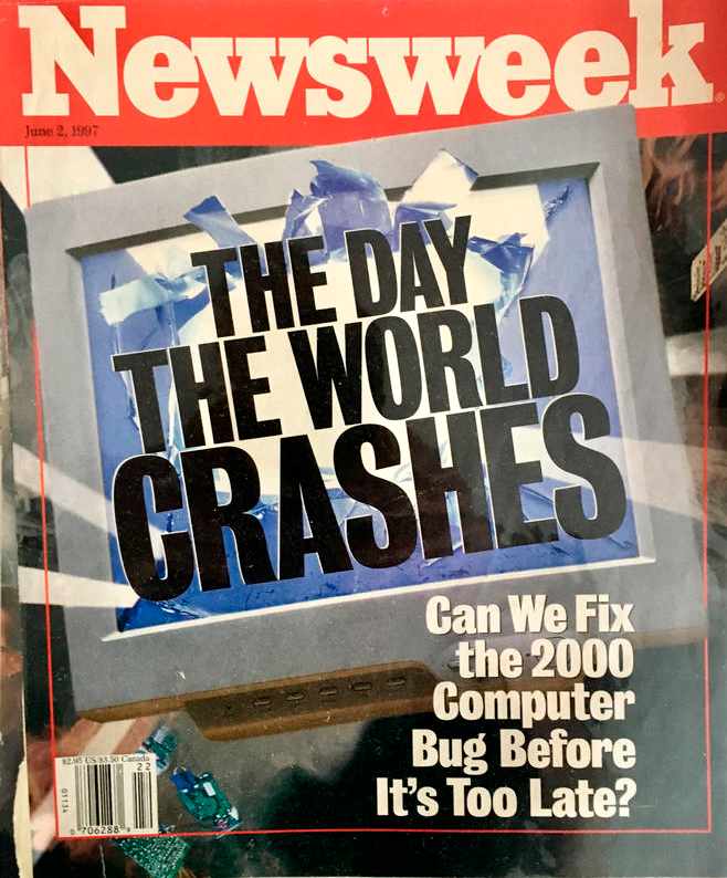 Portada del Newsweek del 97. "El día en que el mundo colapsa". El clima tranquilizador de la prensa del momento en torno al Efecto 2000...
