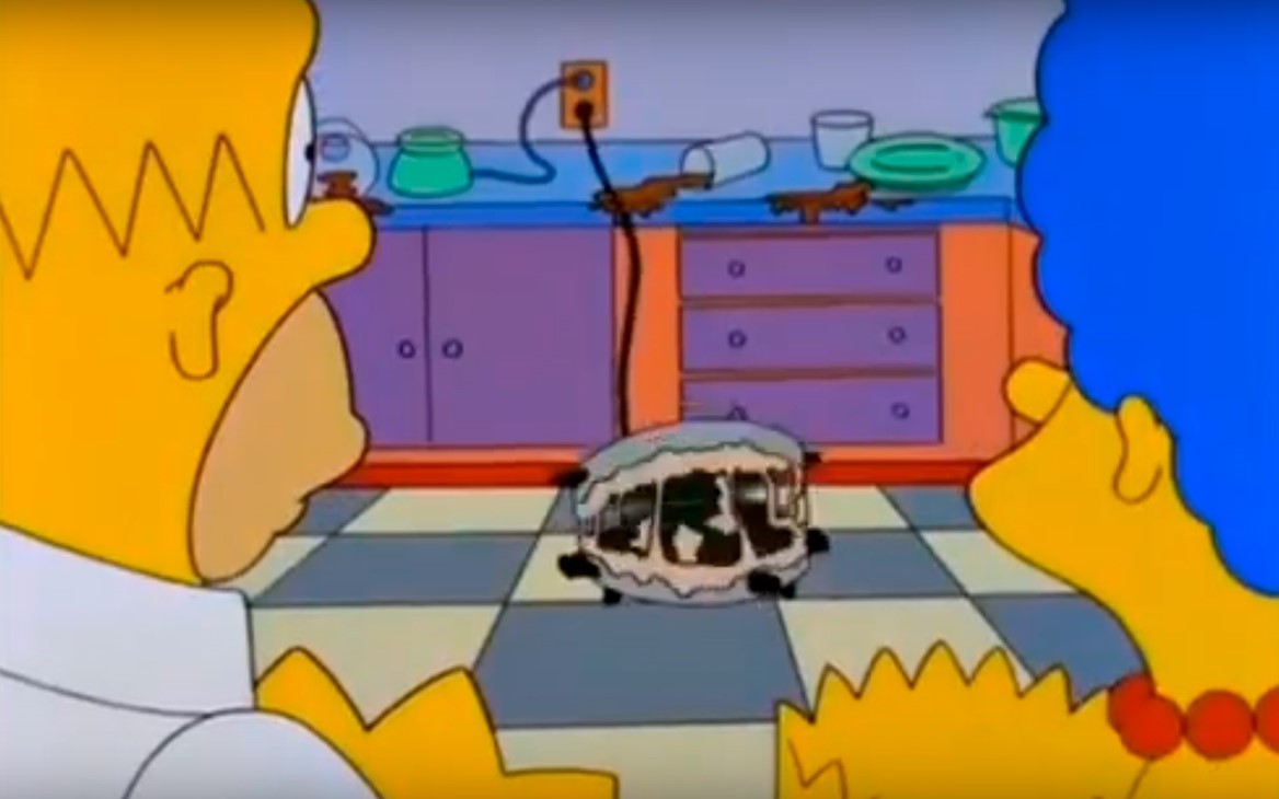La máquina de hacer gofres atacando con furia asesina a la familia Simpson en la noche del Y2K.