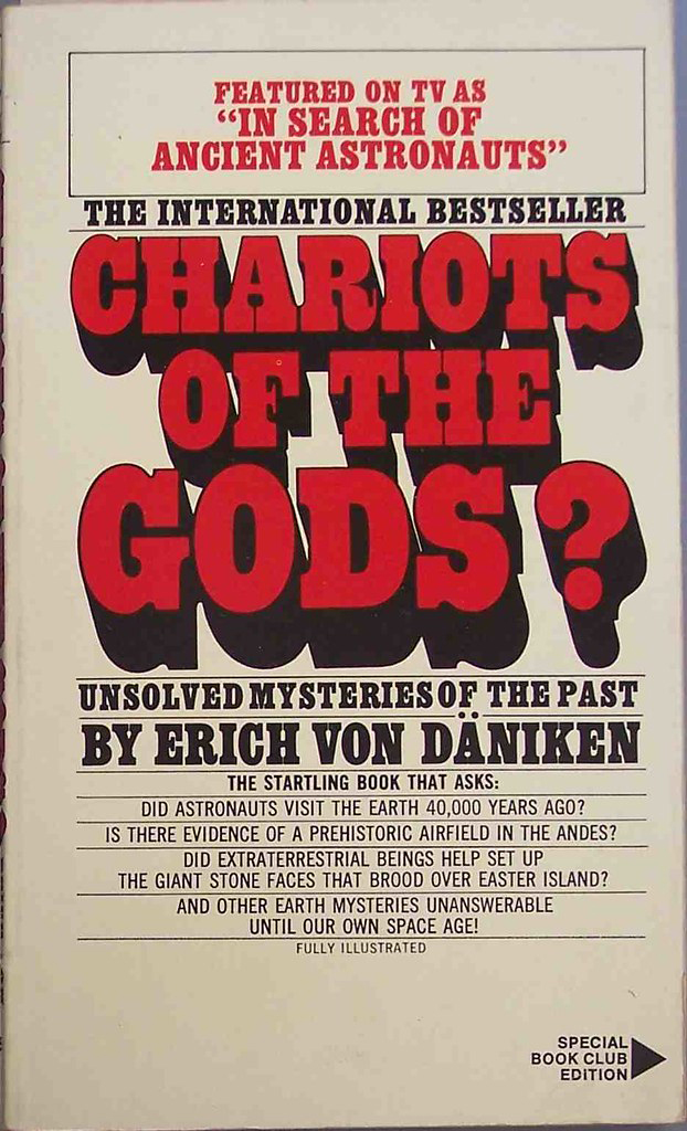 En realidad esta idea de los “astronautas ancestrales” tampoco es que fuera originalmente de von Däniken, sino que había sido ya planteada desde la ficción por diversos autores a lo largo del siglo XIX y fue puesta sobre la mesa como hipótesis durante los años cincuenta del siglo pasado por el periodista británico y pseudohistoriador Harold T. Wilkins; por no hablar de que puede decirse que es uno de los pilares básicos de la fabulosa cosmología de H.P. Lovecraft…